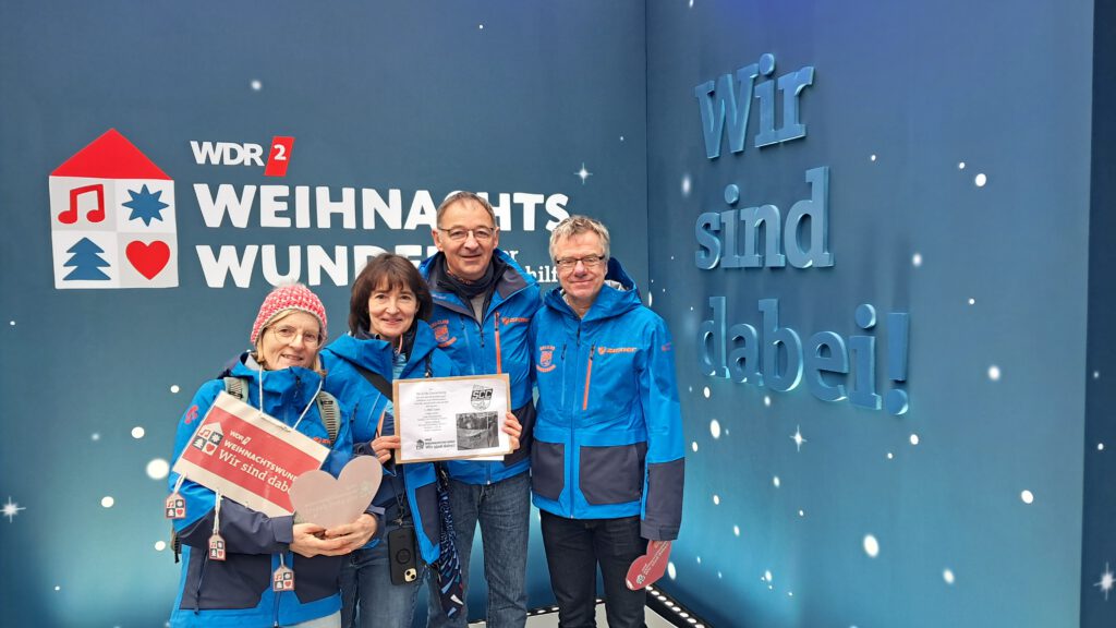 Wir sind dabei! – Dank der tollen Spendenbereitschaft auf unserer Skibörse und auf dem Hüttenzauber in Cronenberg konnten wir am 14.12.2025 die stolze Summe von 1000 € persönlich beim Glashaus des WDR in Essen abgeben.